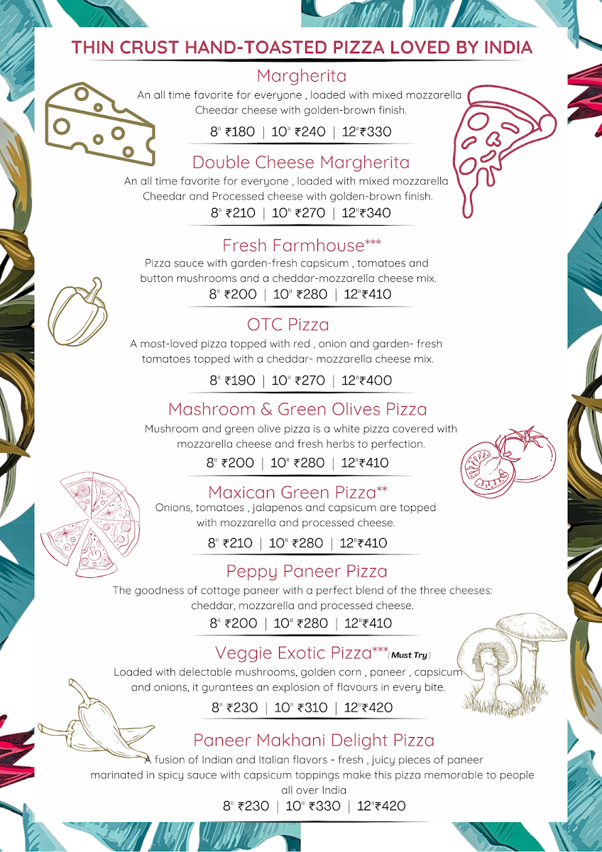 Loaded with delectable mushrooms, golden corn, paneer, capsicum, and onions, guarantees explosion of flavors in every bite.