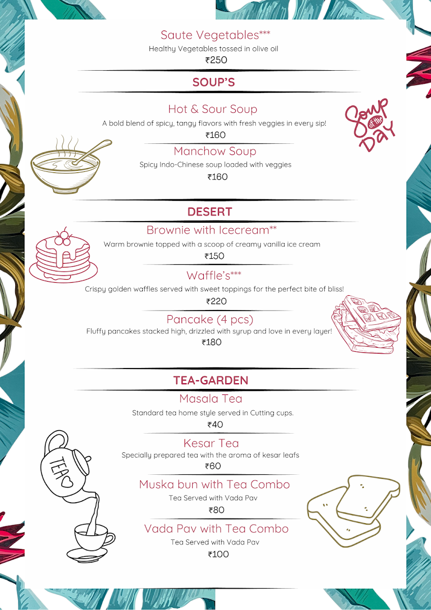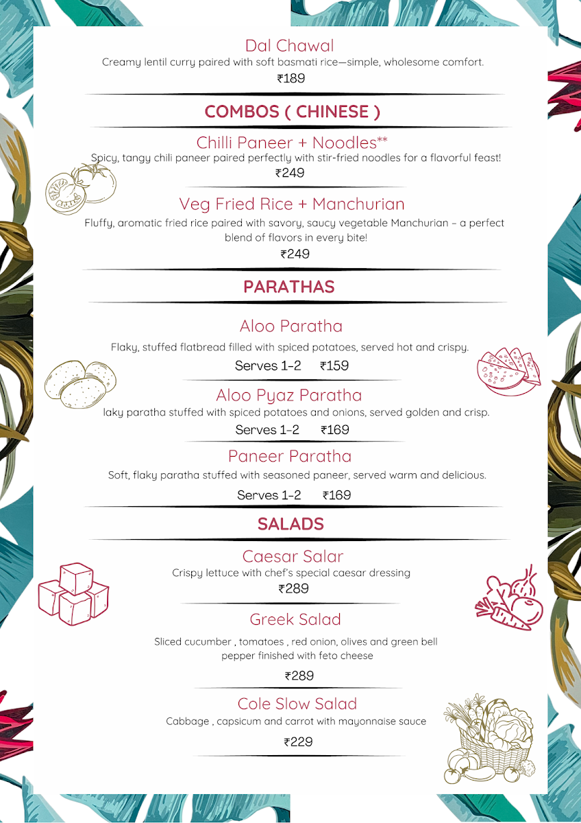 - Burgers: Savor the Aloo Tikki Burger, a crispy delight, or opt for the Cottage Cheese Burger, bursting with spiced goodness.